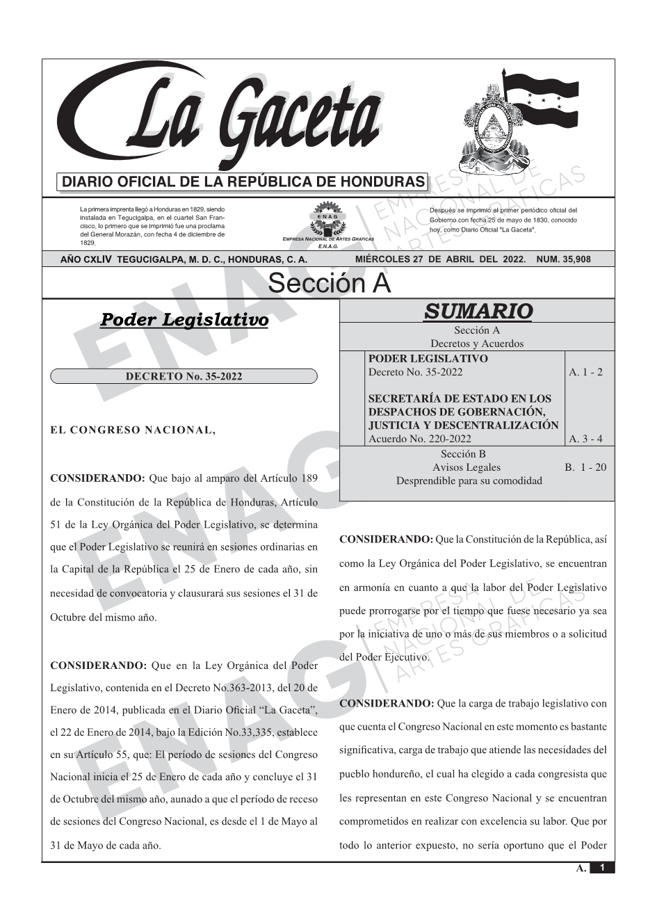 SECRETARÍA DE ESTADO EN LOS DESPACHOS DE GOBERNACIÓN, JUSTICIA Y DESCENTRALIZACIÓNAcuerdo No. 220-2022