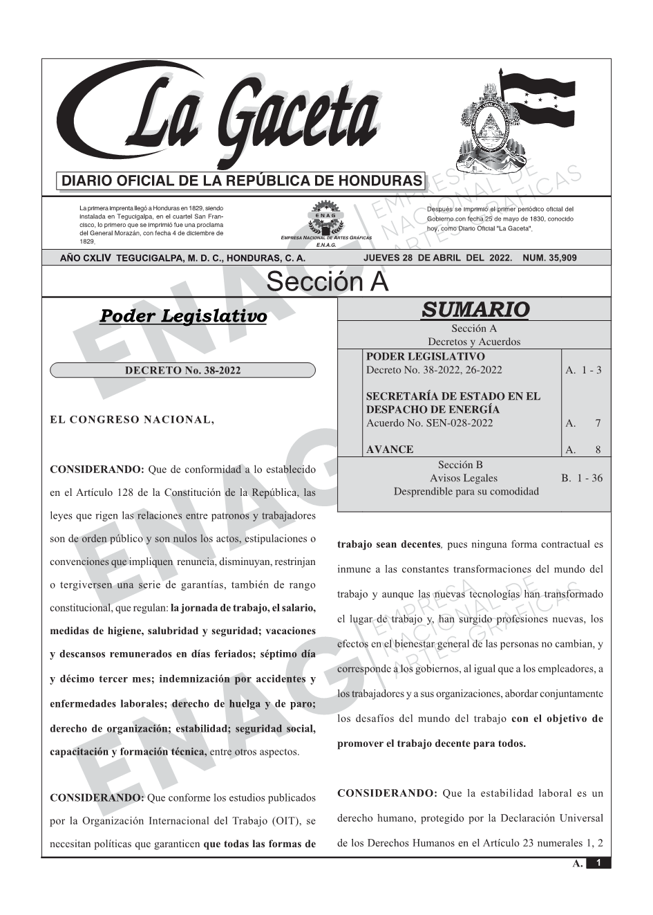 PODER LEGISLATIVODecreto No. 38-2022, 26-2022