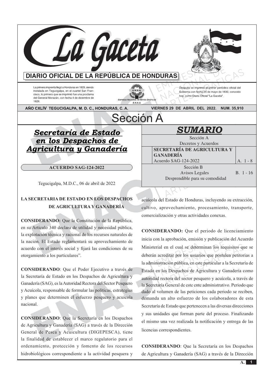 La Gaceta N° 35,910 del 29 de abril de 2022