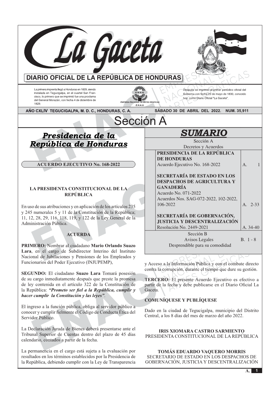 La Gaceta N° 35,911 del 30 de abril de 2022