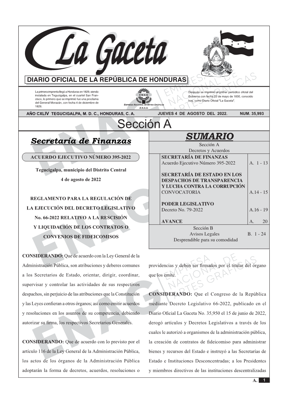 SECRETARÍA DE FINANZASAcuerdo Ejecutivo Número 395-2022