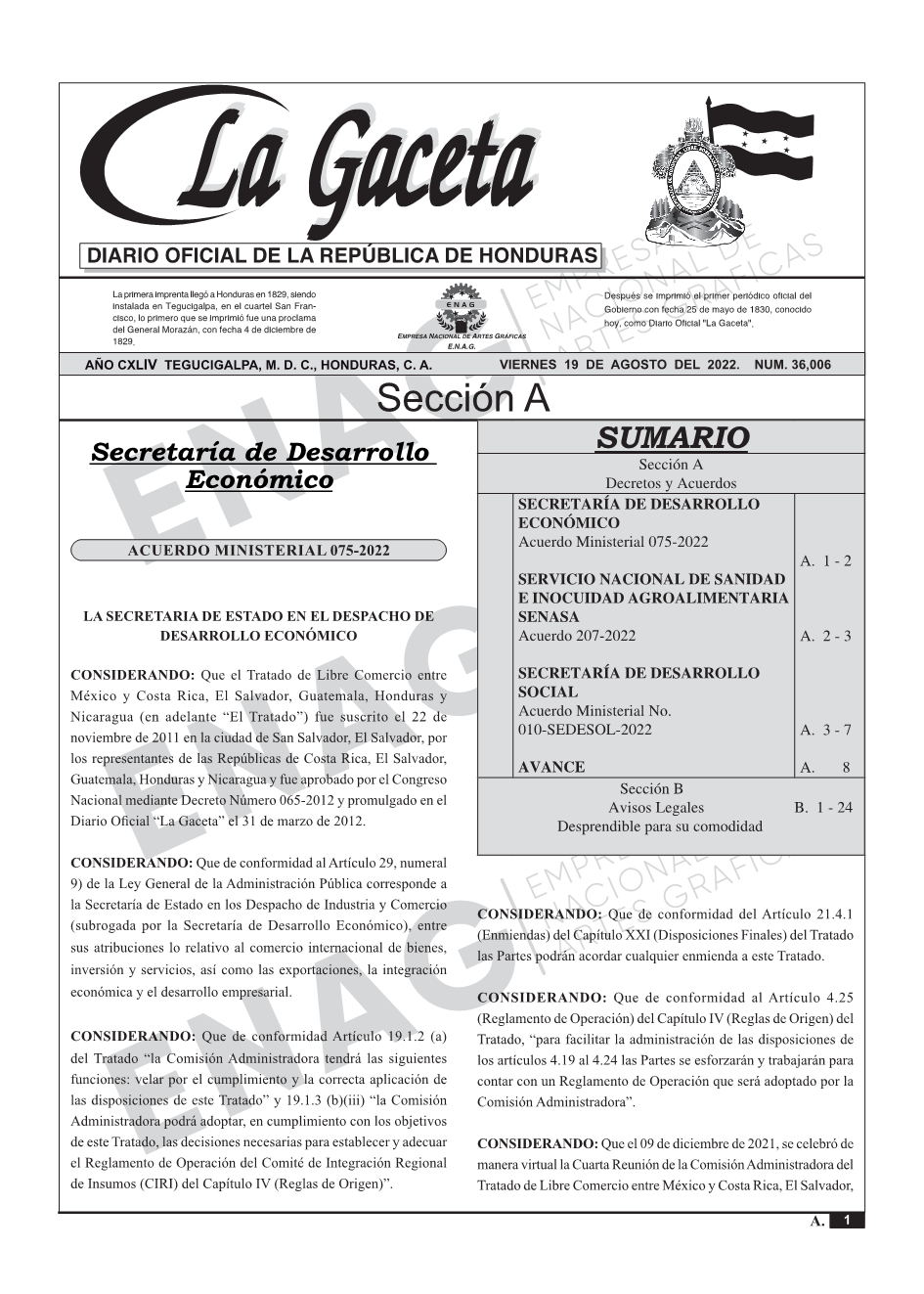 SERVICIO NACIONAL DE SANIDAD E INOCUIDAD AGROALIMENTARIA SENASAAcuerdo 207-2022