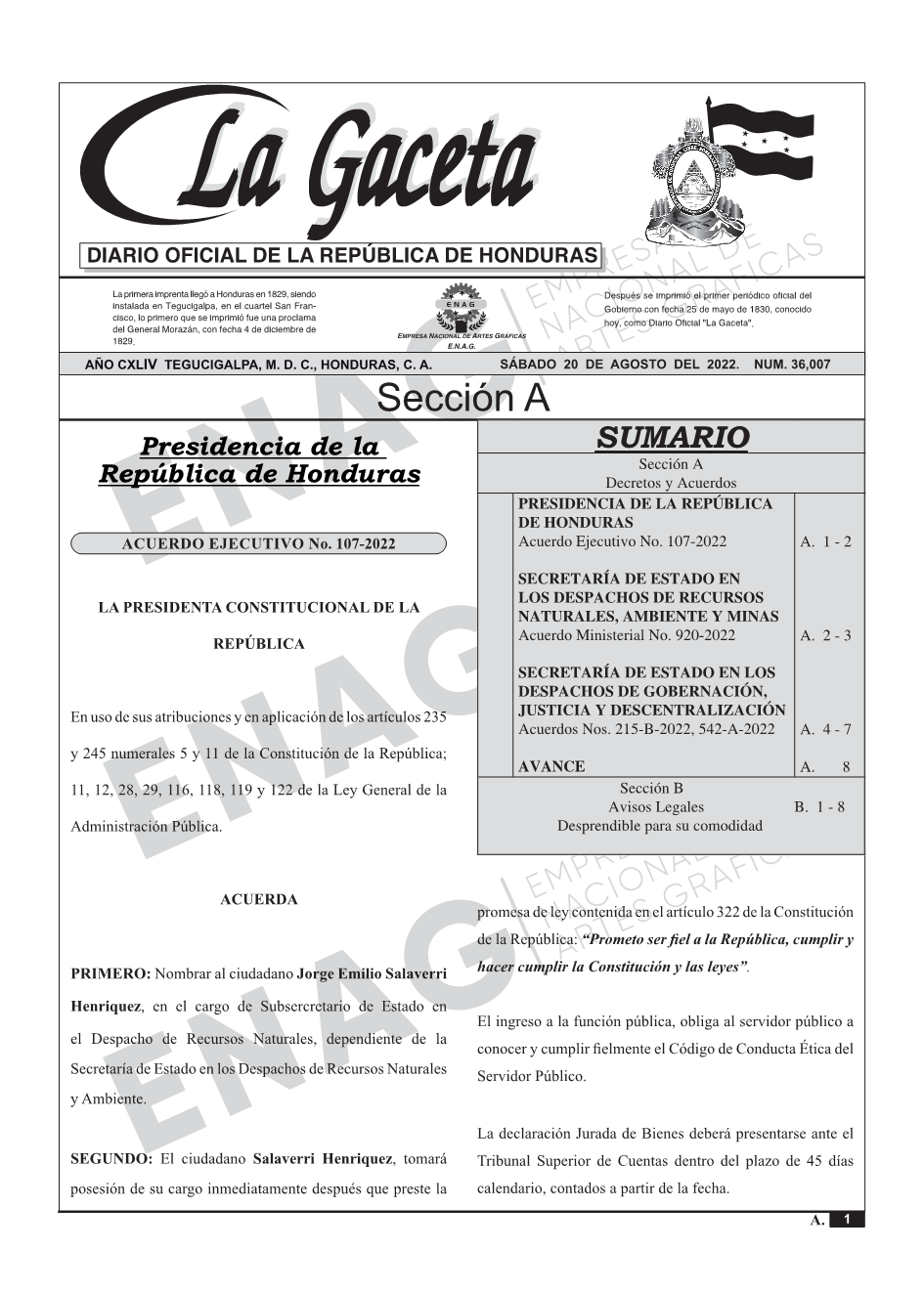 La Gaceta N° 36,007 del 20 de agosto de 2022