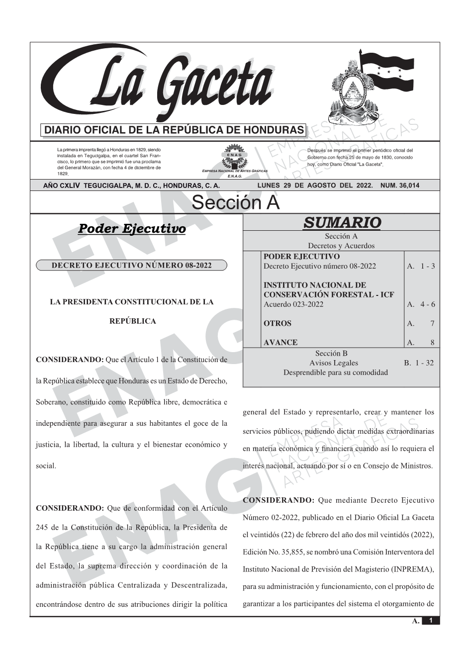 PODER EJECUTIVODecreto Ejecutivo número 08-2022