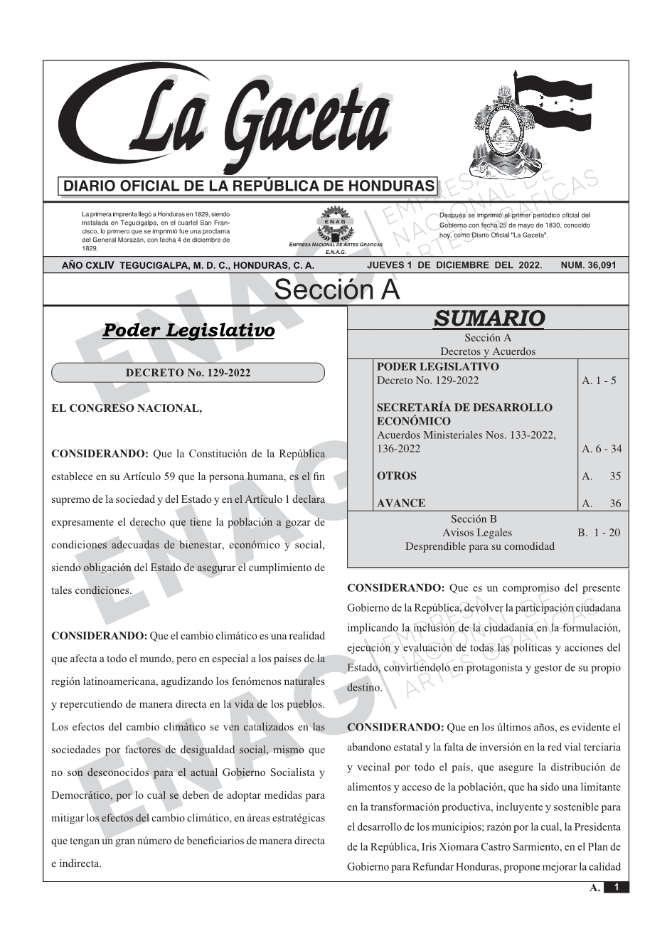 PODER LEGISLATIVODecreto No. 129-2022