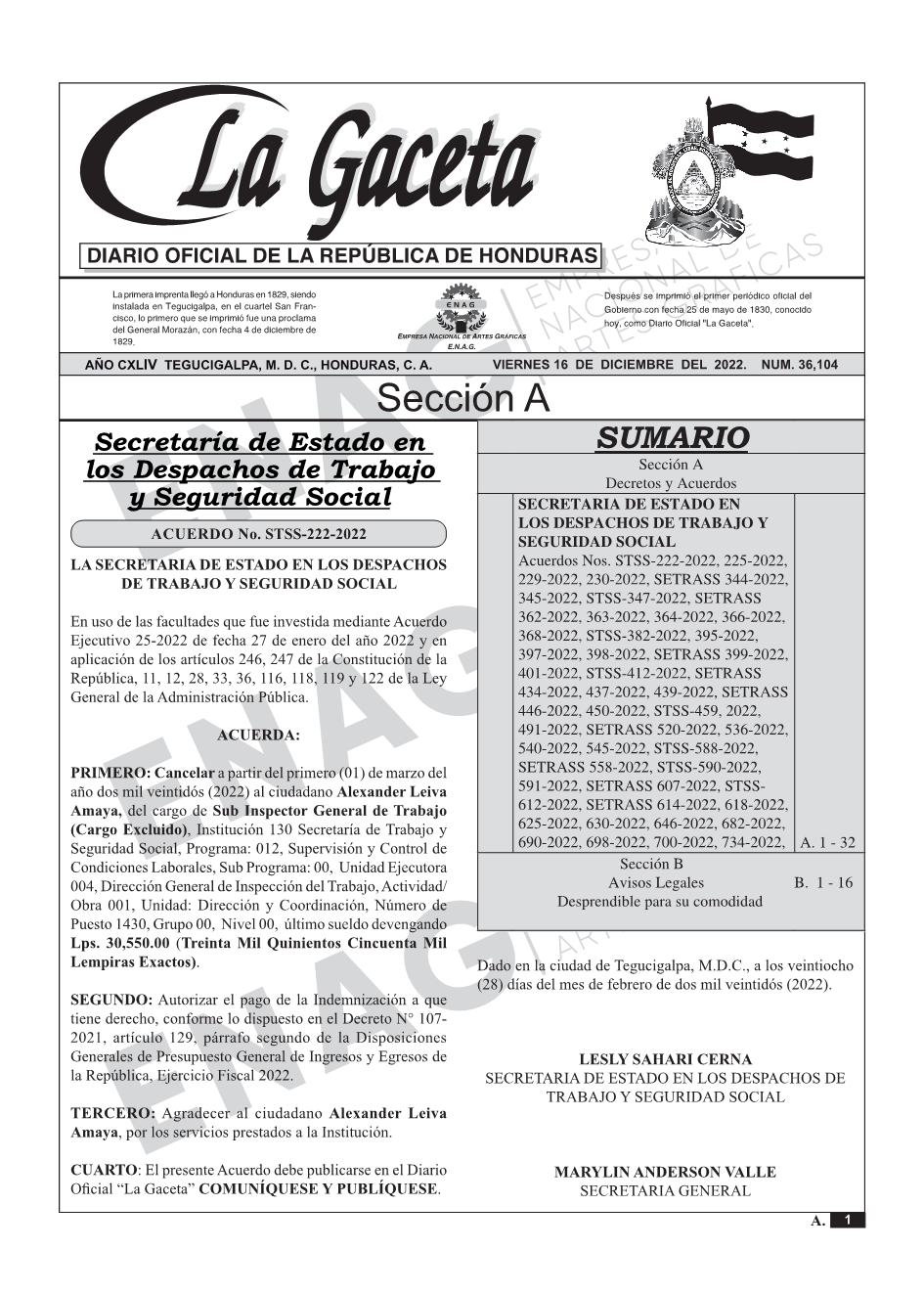 La Gaceta N° 36,104 del 16 de diciembre de 2022