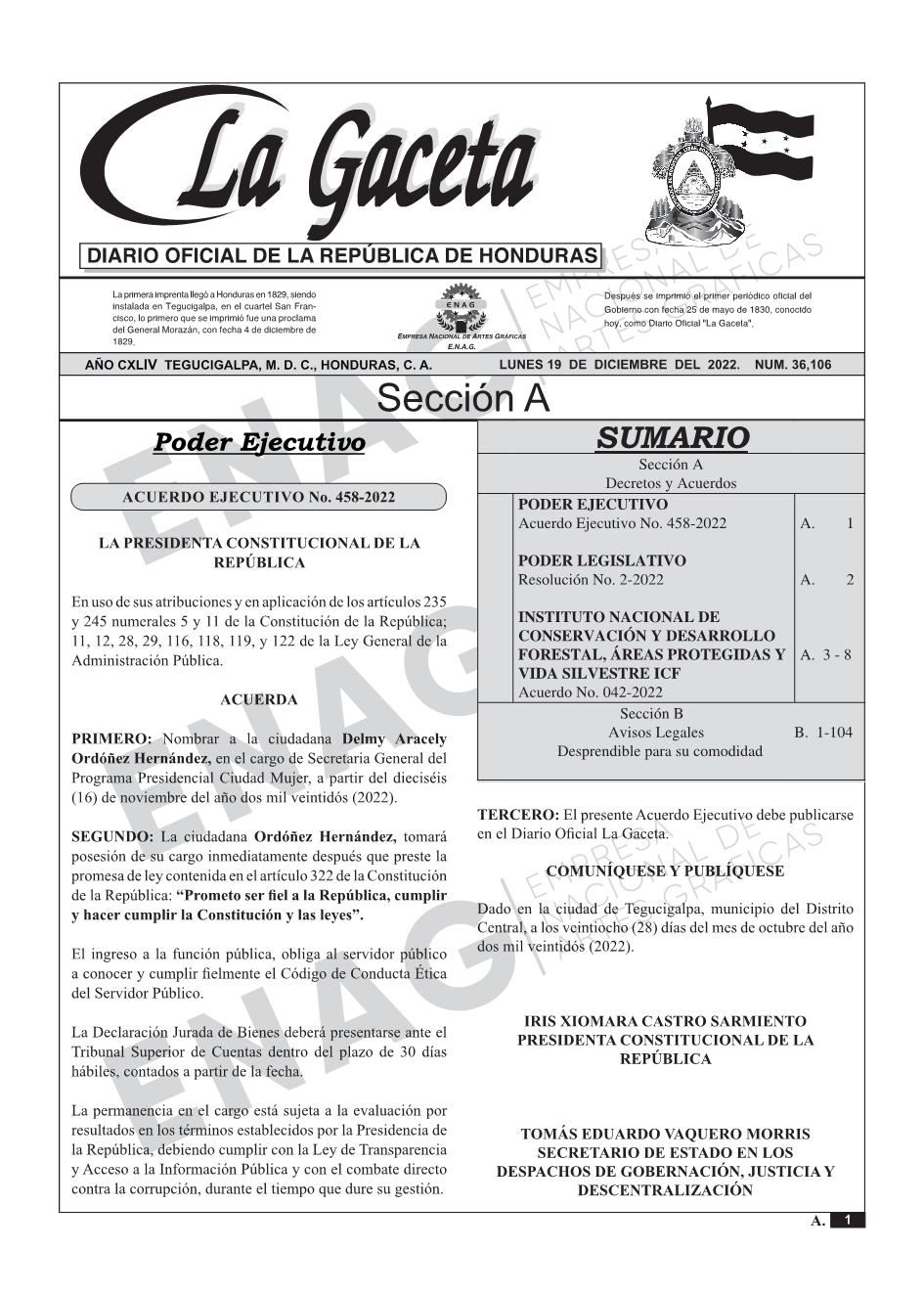 PODER EJECUTIVOAcuerdo Ejecutivo No. 458-2022