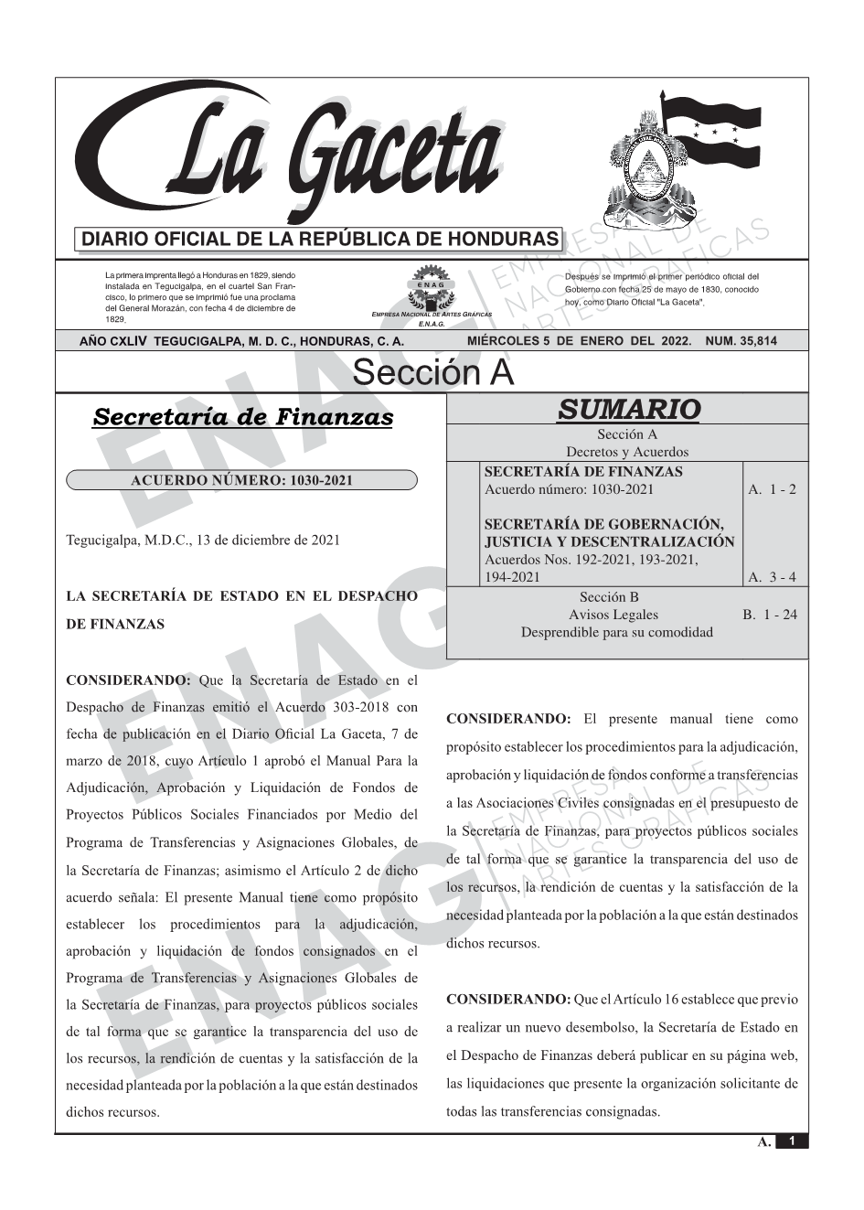 SECRETARÍA DE FINANZASAcuerdo número: 1030-2021