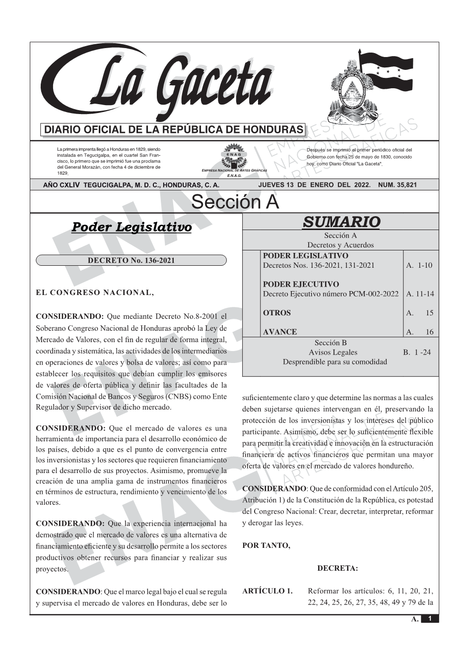 PODER LEGISLATIVODecretos Nos. 136-2021, 131-2021