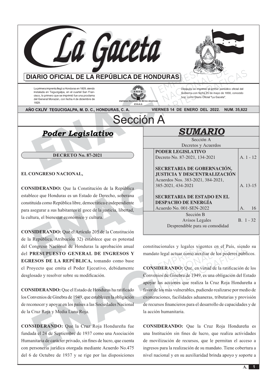 PODER LEGISLATIVODecreto No. 87-2021, 134-2021.