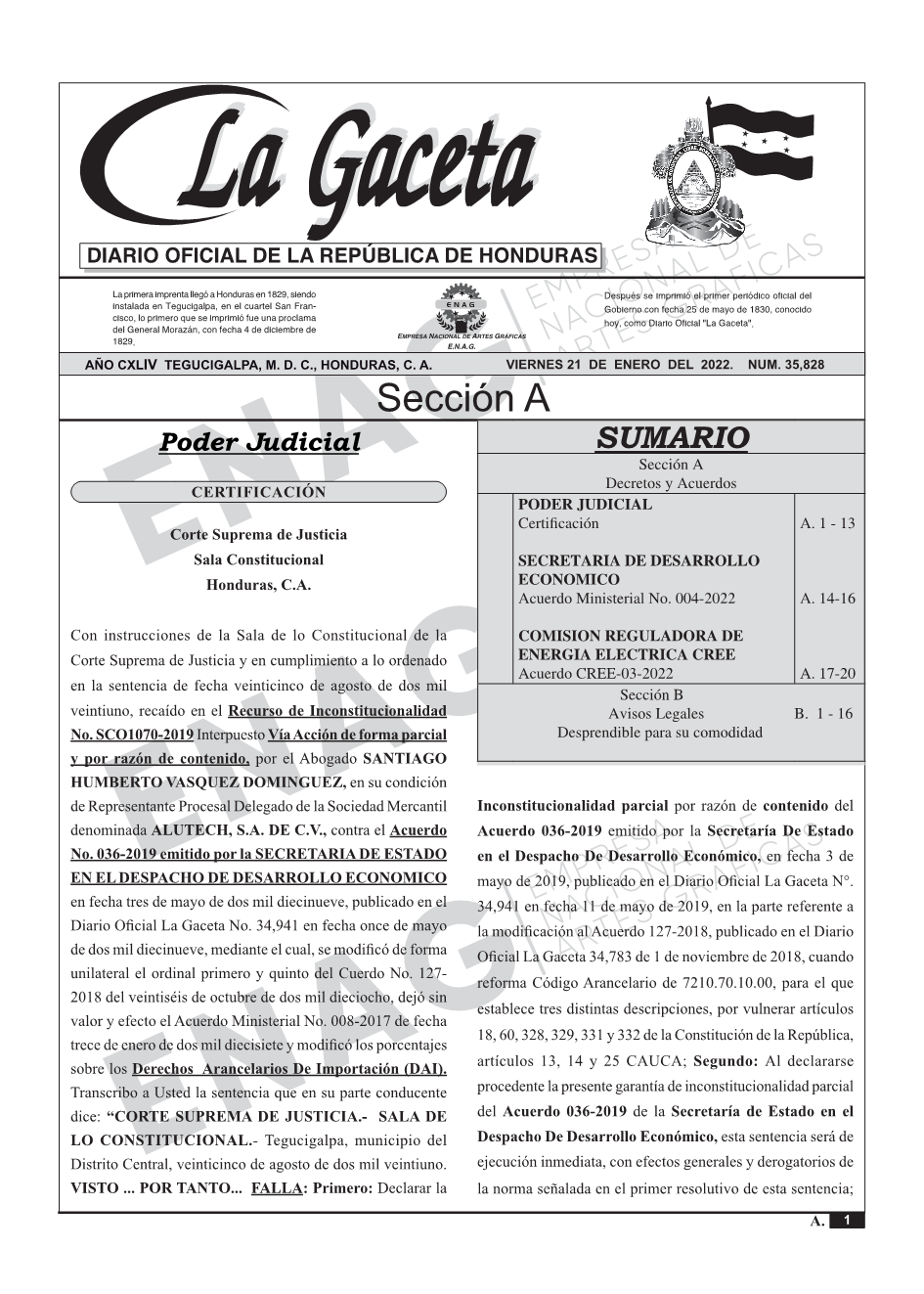 COMISION REGULADORA DE ENERGIA ELECTRICA CREEAcuerdo CREE-03-2022.