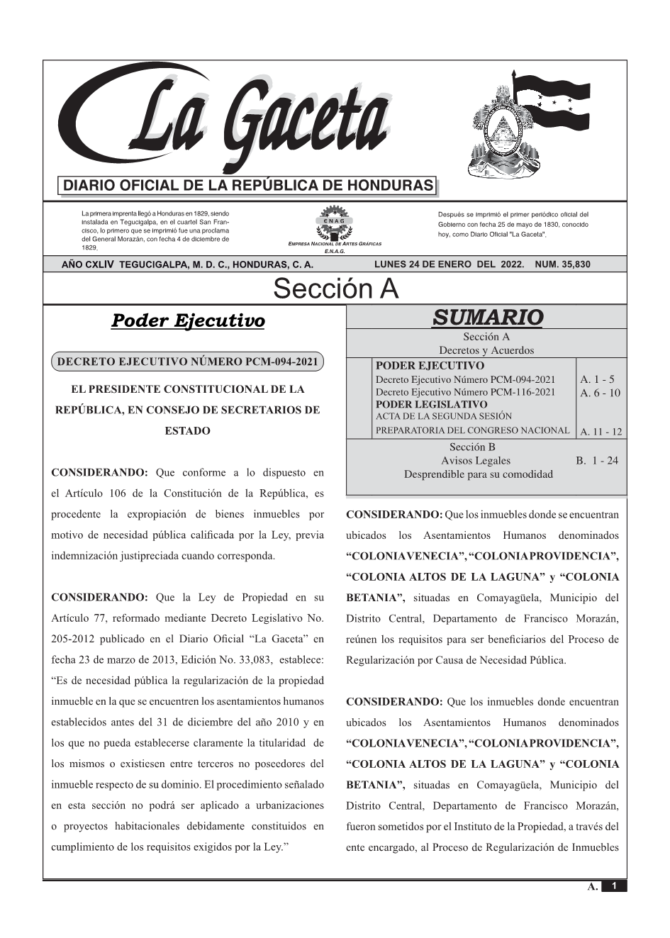 PODER EJECUTIVODecreto Ejecutivo Número PCM-094-2021Decreto Ejecutivo Número PCM-116-2021.