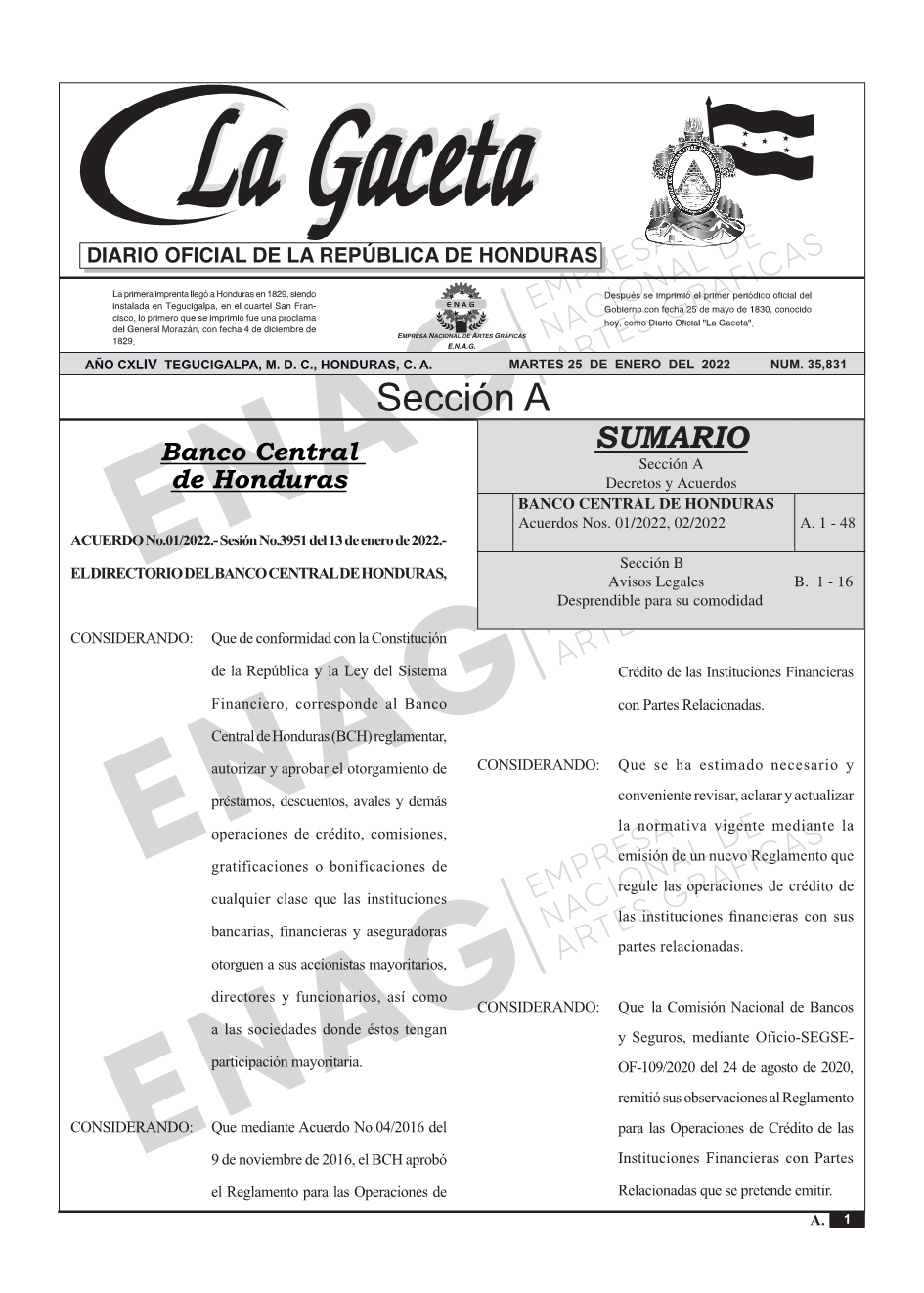 La Gaceta N° 35,831 del 25 de enero de 2022