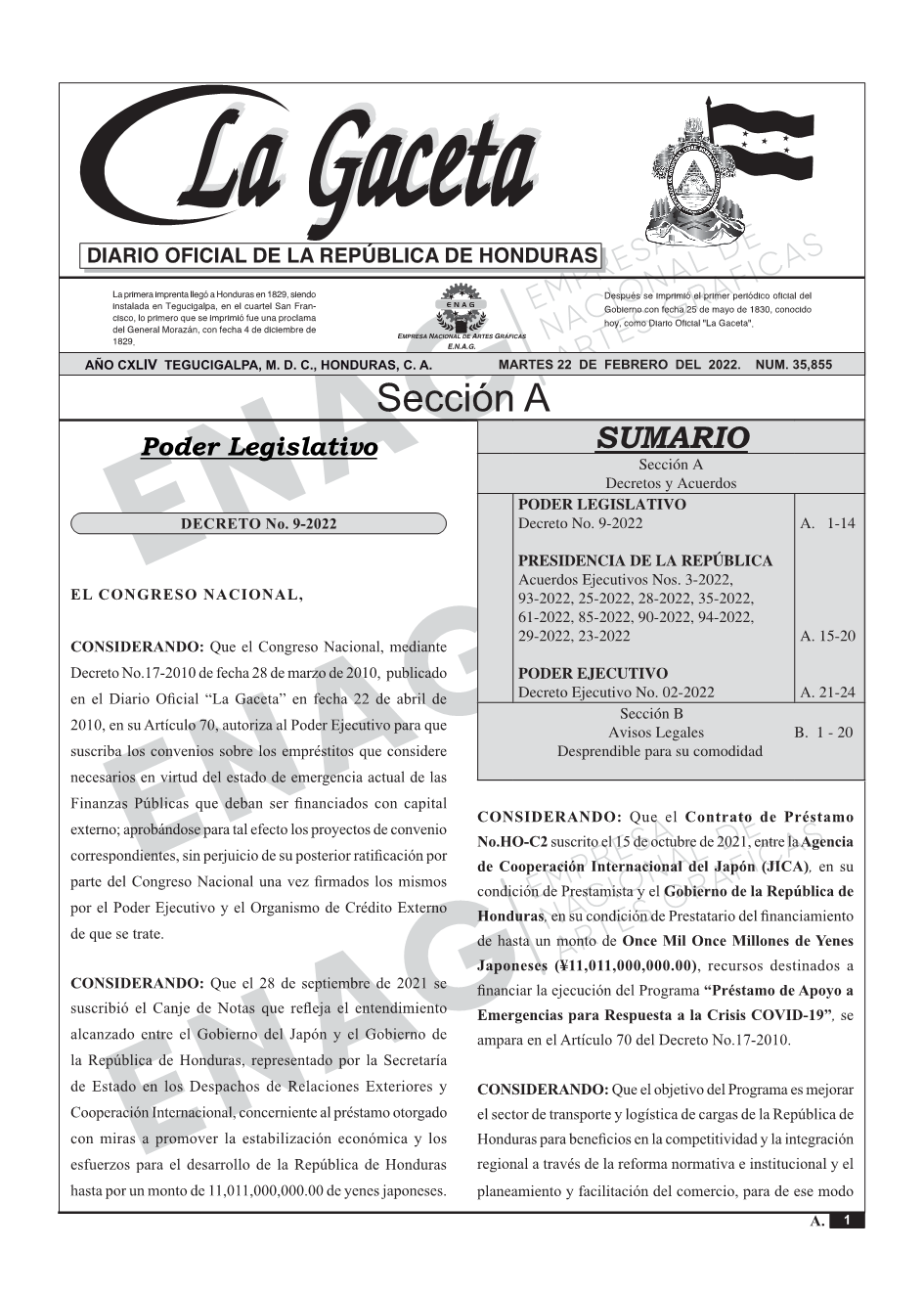 PODER LEGISLATIVODecreto No. 9-2022