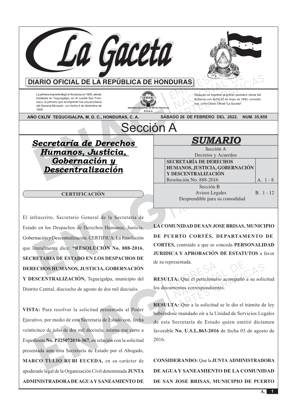 La Gaceta N° 35,859 del 26 de febrero de 2022