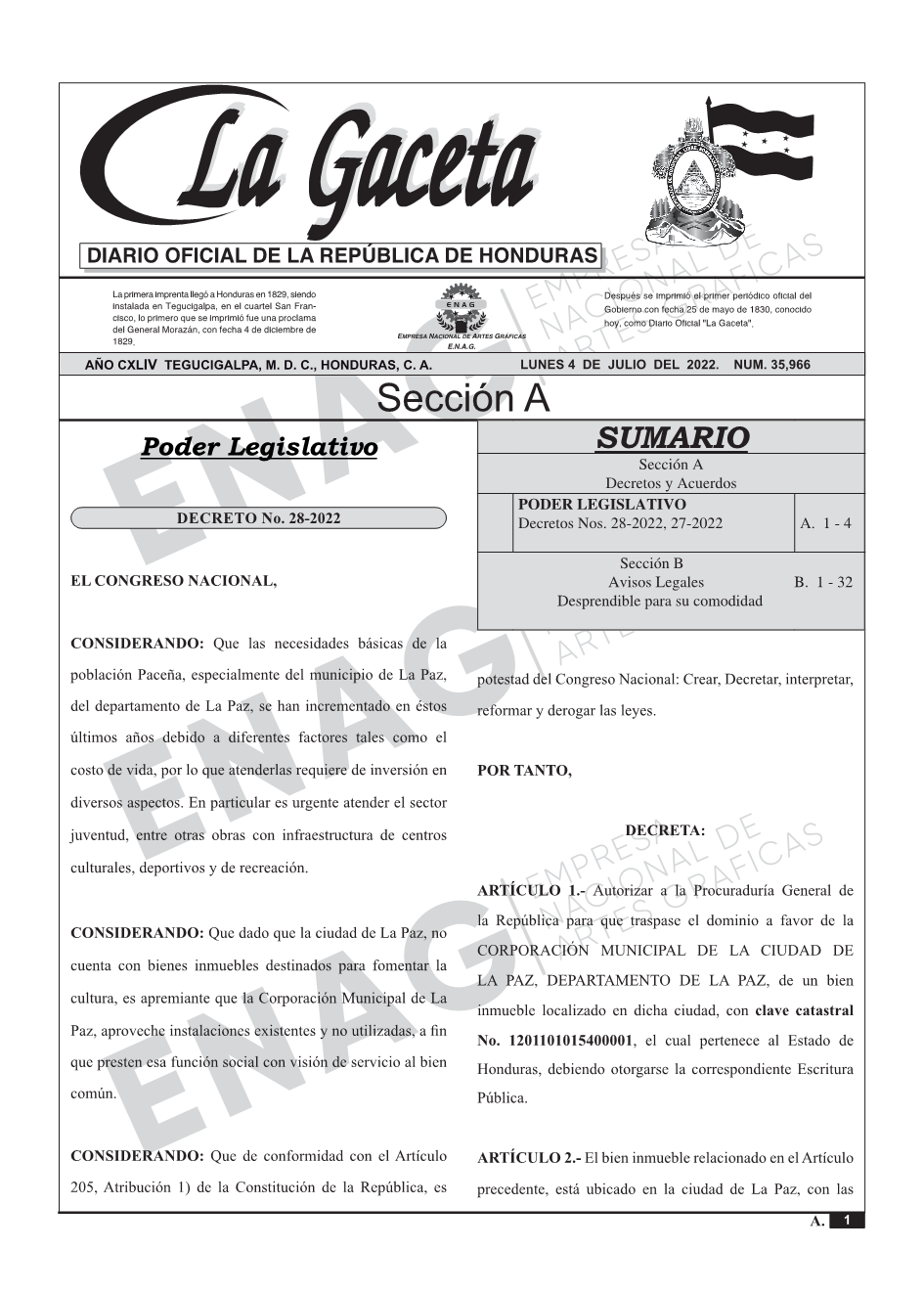La Gaceta N° 35,966 del 04 de julio de 2022