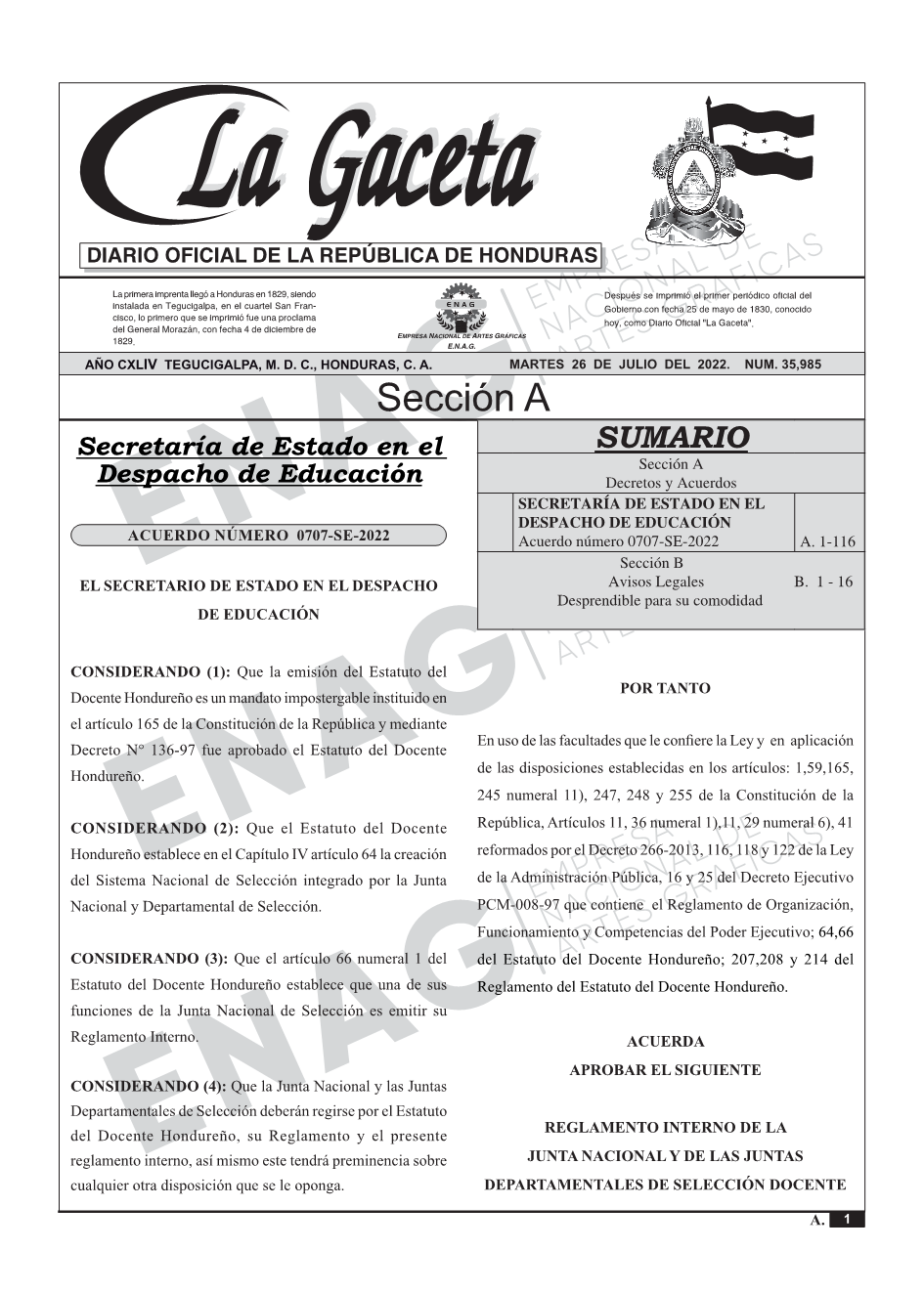La Gaceta N° 35,985 del 26 de julio de 2022
