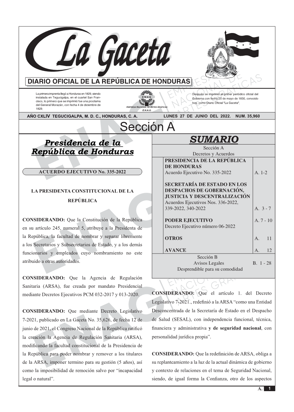 Acuerdo Ejecutivo No. 335-2022
