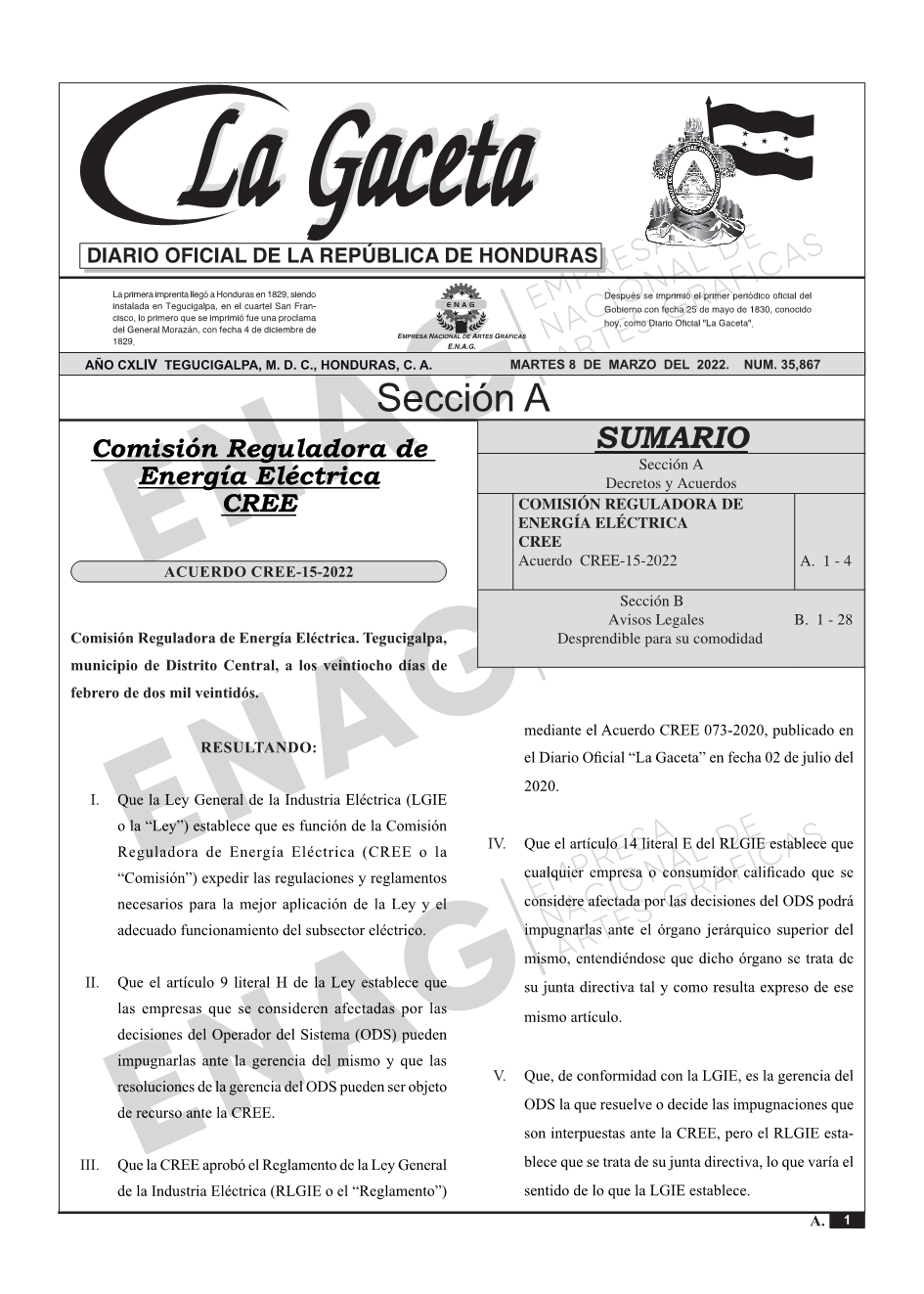 La Gaceta N° 35,867 del 08 de marzo de 2022
