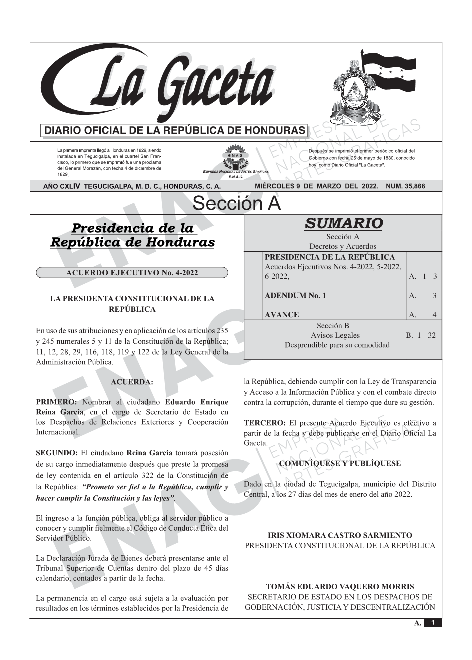La Gaceta N° 35,868 del 09 de marzo de 2022