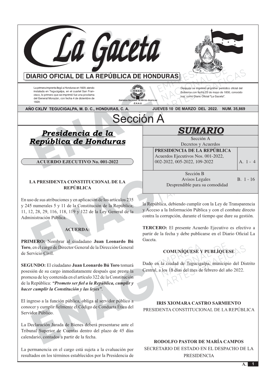 La Gaceta N° 35,869 del 10 de marzo de 2022