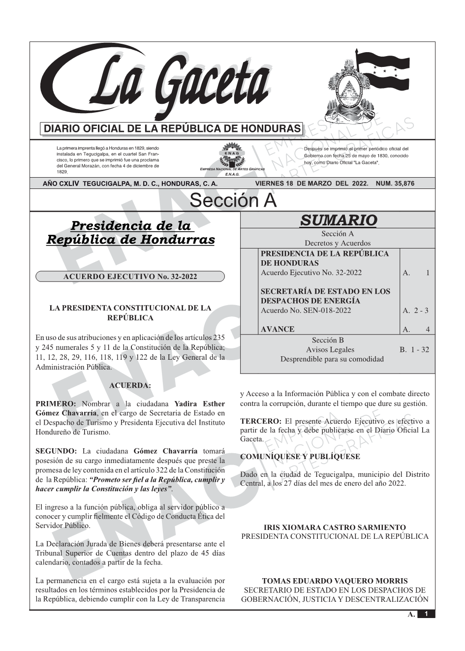 La Gaceta N° 35,876 del 18 de marzo de 2022