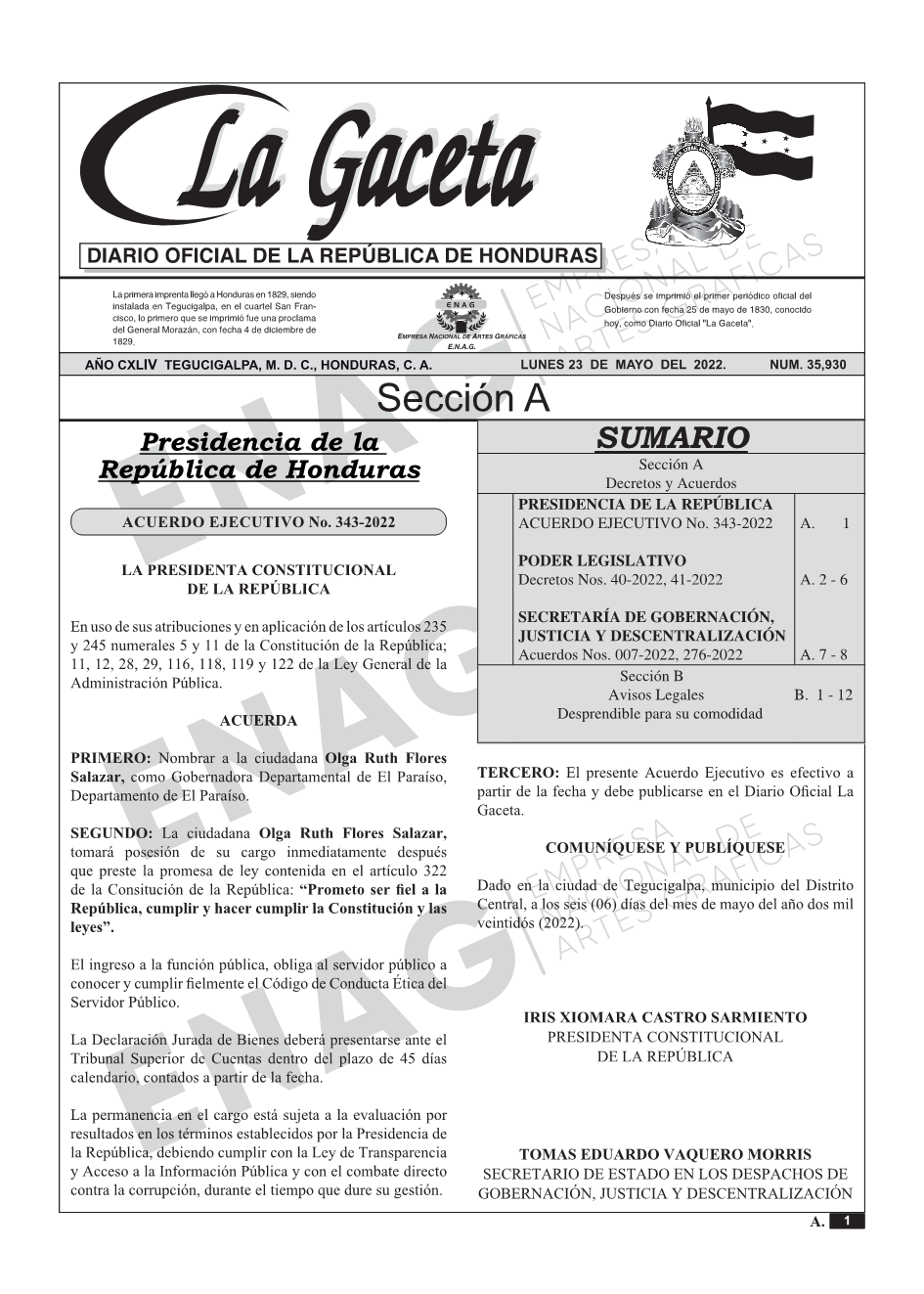 SECRETARÍA DE GOBERNACIÓN, JUSTICIA Y DESCENTRALIZACIÓNAcuerdo No. 007-2022