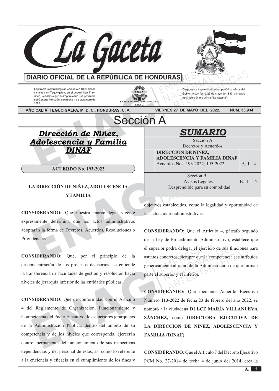 La Gaceta N° 35,934 del 27 de mayo de 2022