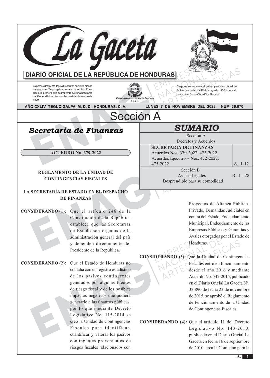 La Gaceta N° 36,070 del 07 de noviembre de 2022
