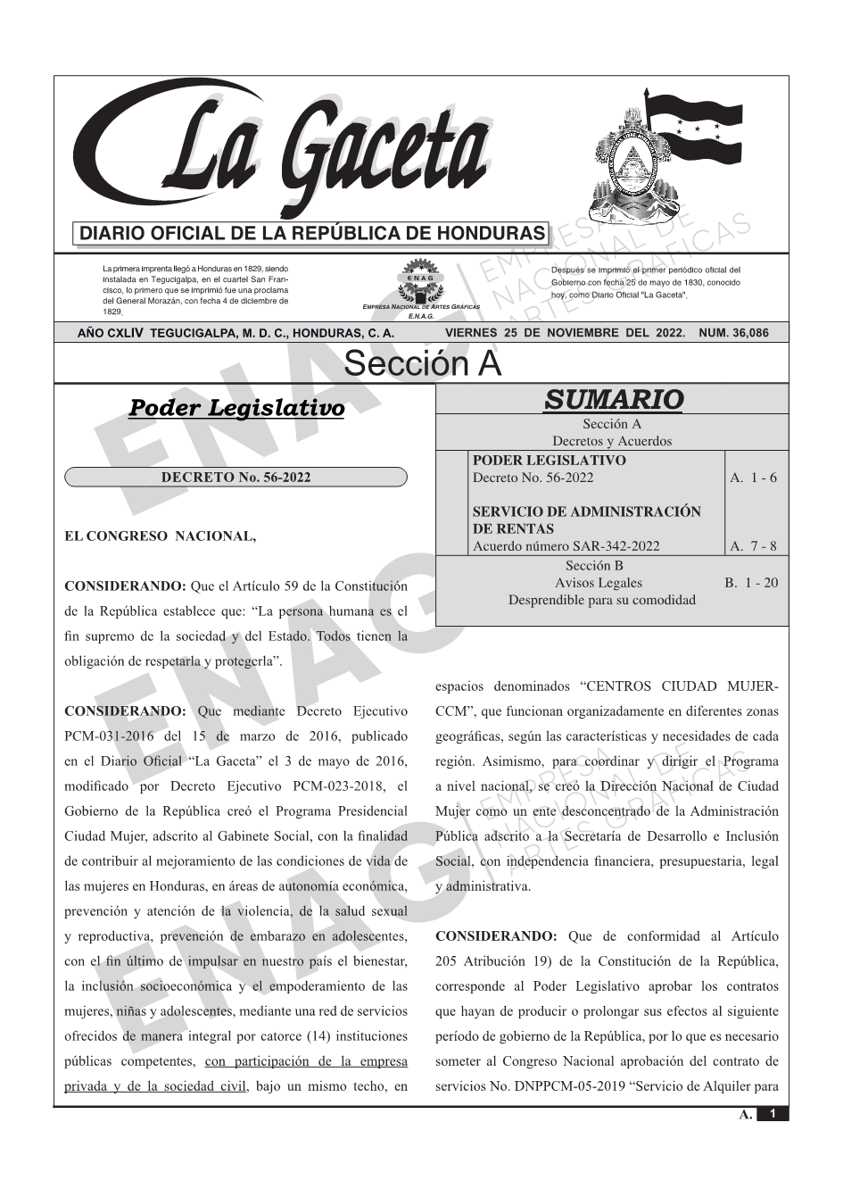La Gaceta N° 36,086 del 26 de noviembre de 2022