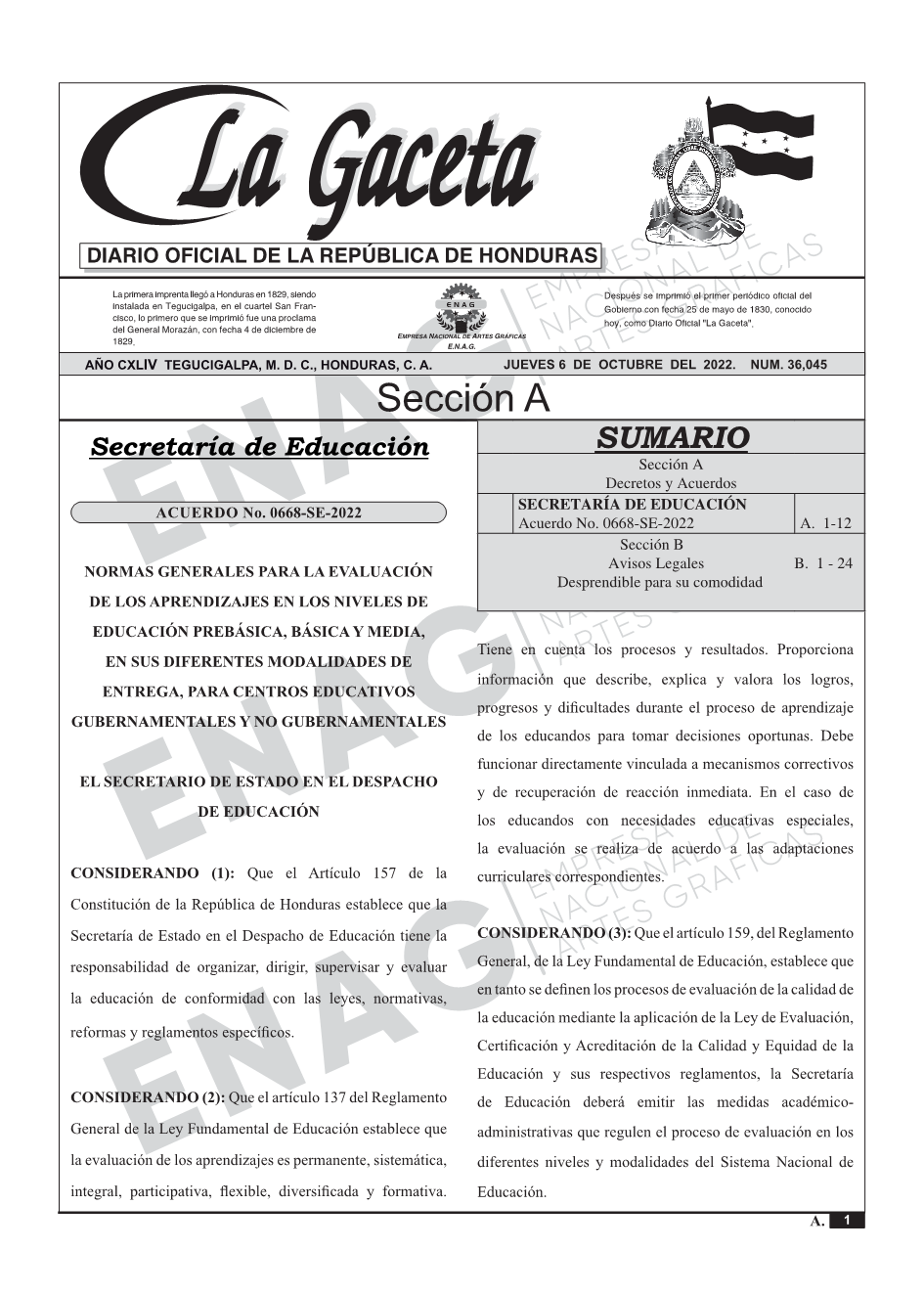 La Gaceta N° 36,045 del 06 de octubre de 2022