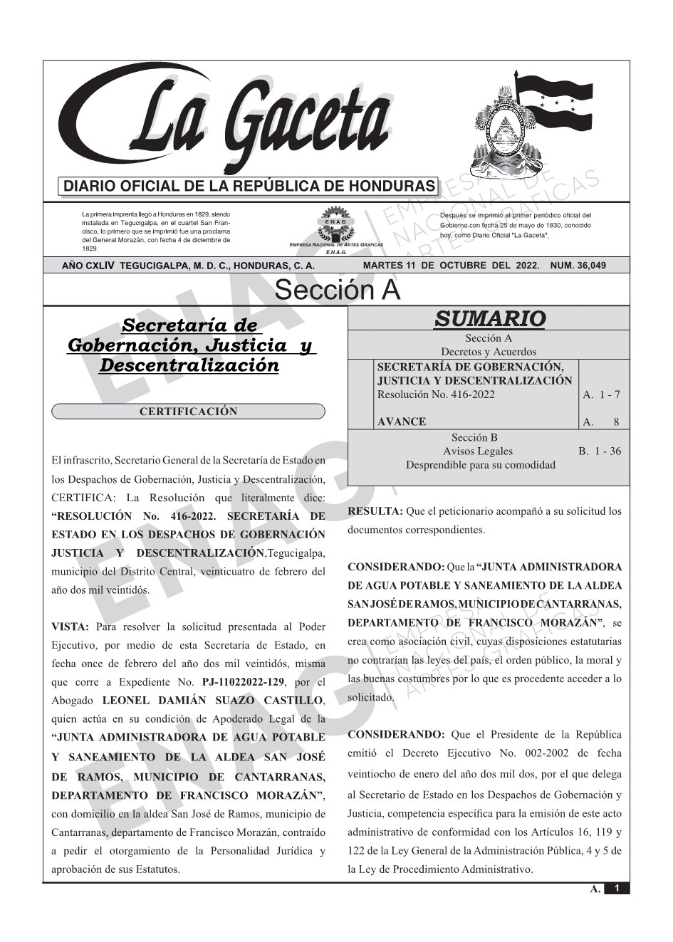 La Gaceta N° 36,049 del 11 de octubre de 2022