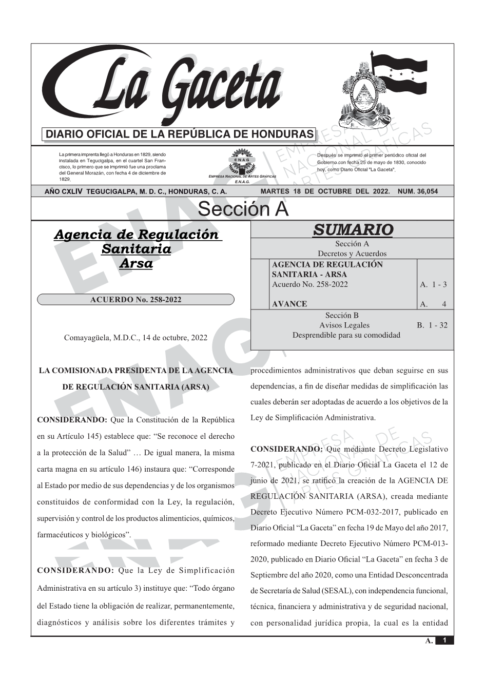 La Gaceta N° 36,054 del 18 de octubre de 2022