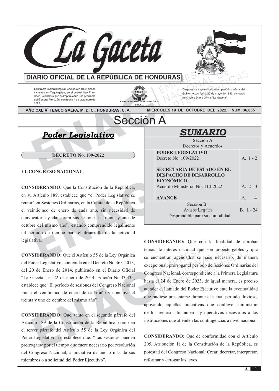 PODER LEGISLATIVODecreto No. 109-2022