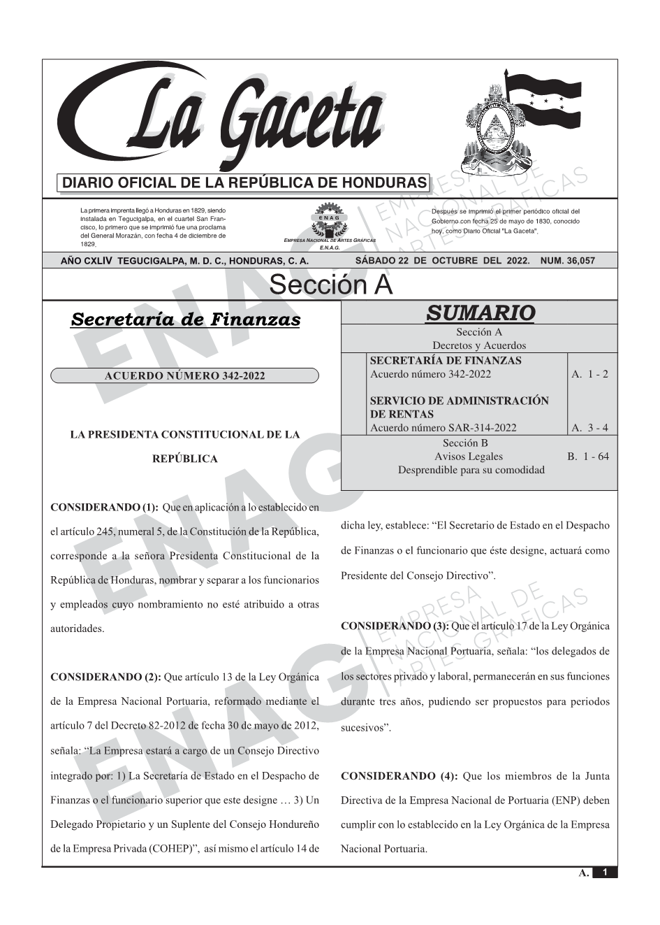 SECRETARÍA DE FINANZASAcuerdo número 342-2022