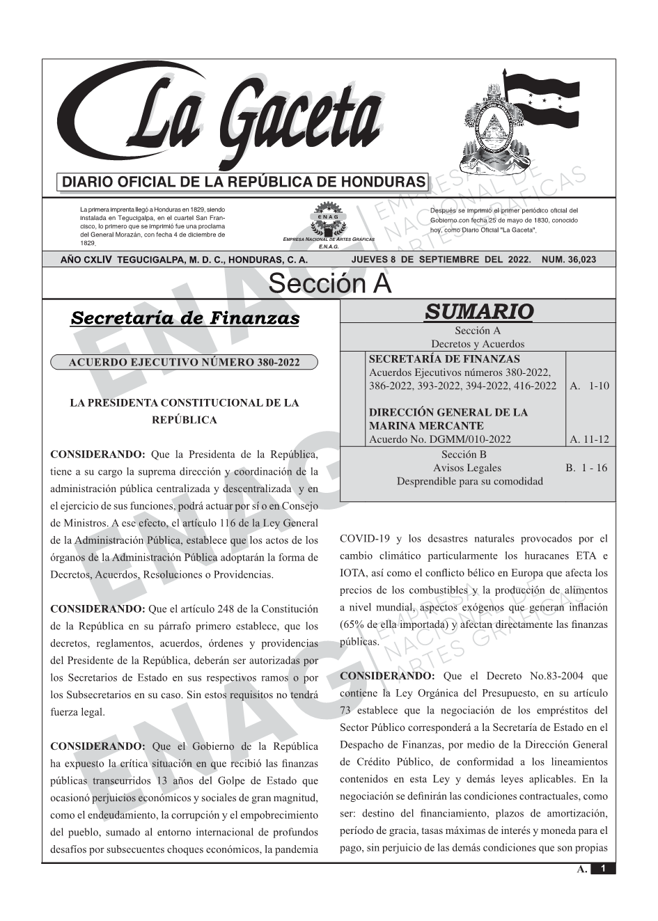 SECRETARÍA DE FINANZASAcuerdos Ejecutivos números 380-2022, 386-2022, 393-2022, 394-2022, 416-2022