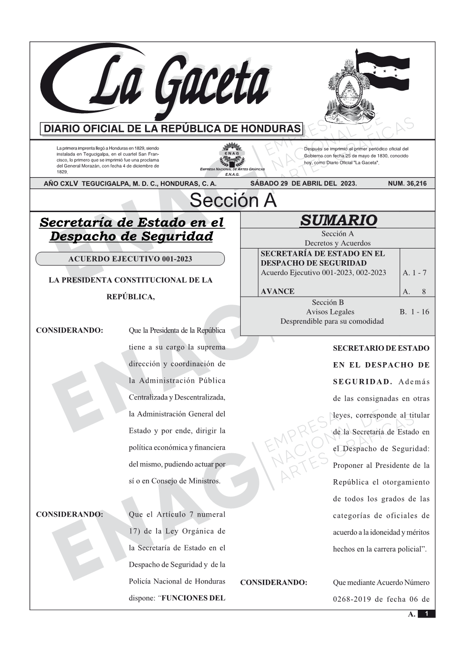 La Gaceta N° 36,216. del 29 de abril de 2023