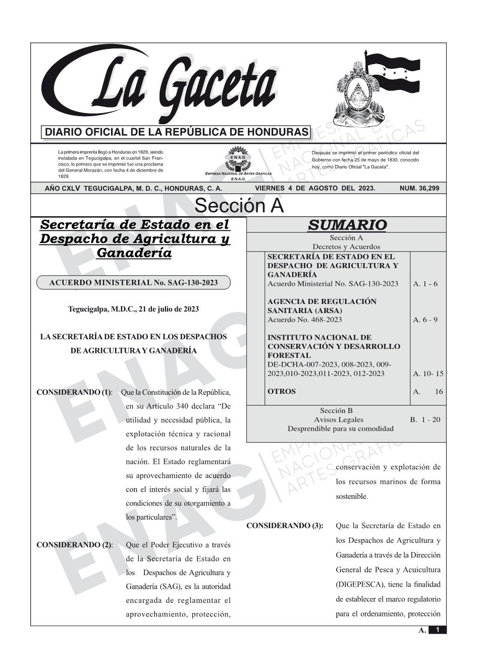 La Gaceta N° 36,299 del 04 de agosto de 2023