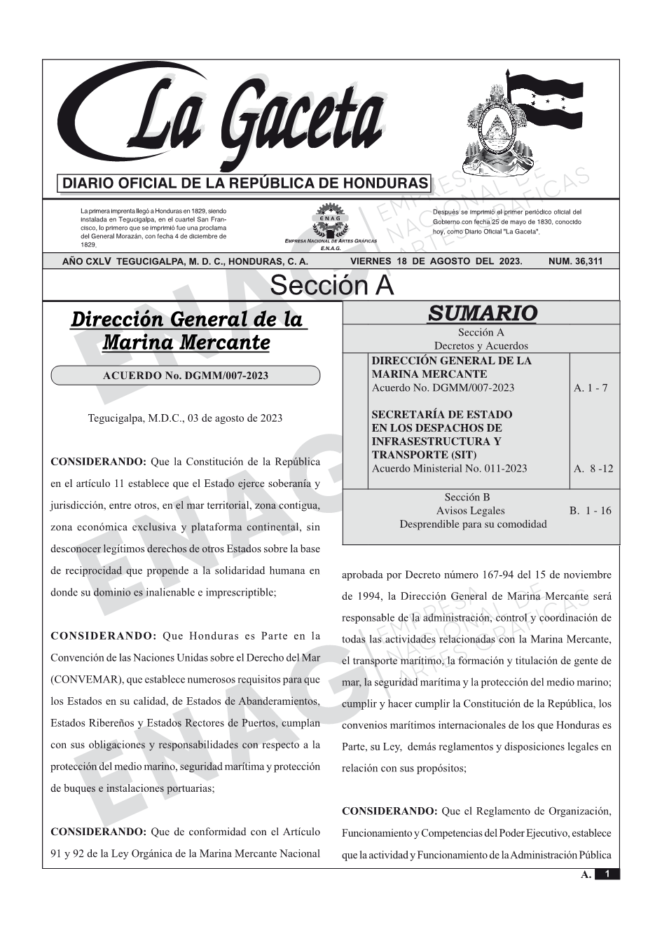 DIRECCIÓN GENERAL DE LA MARINA MERCANTEAcuerdo No. DGMM/007-2023