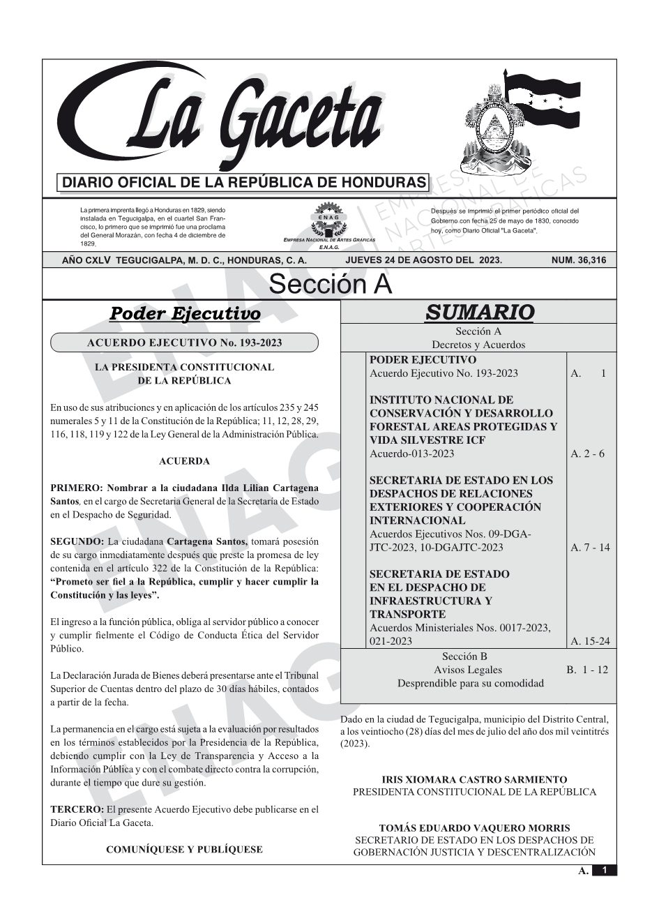 La Gaceta N° 36,316 del 24 de agosto de 2023