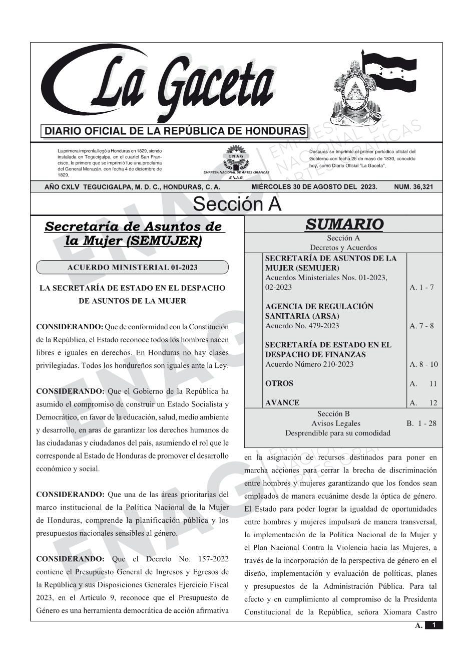 SECRETARÍA DE ASUNTOS DE LA MUJER (SEMUJER)Acuerdos Ministeriales Nos. 01-2023, 02-2023