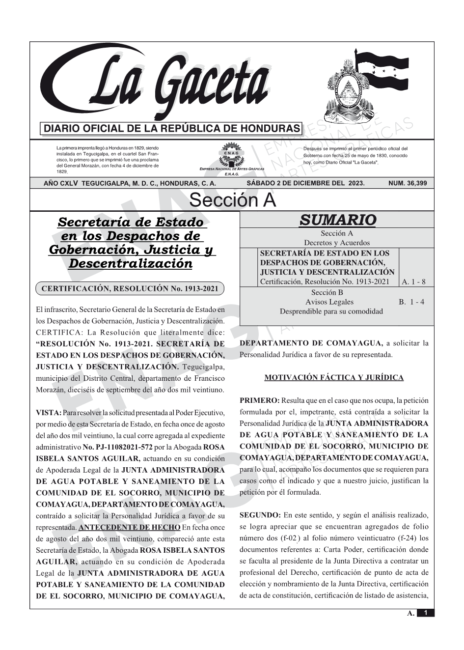 SECRETARÍA DE ESTADO EN LOS DESPACHOS DE GOBERNACIÓN, JUSTICIA Y DESCENTRALIZACIÓNCertificación, Resolución No. 1913-202