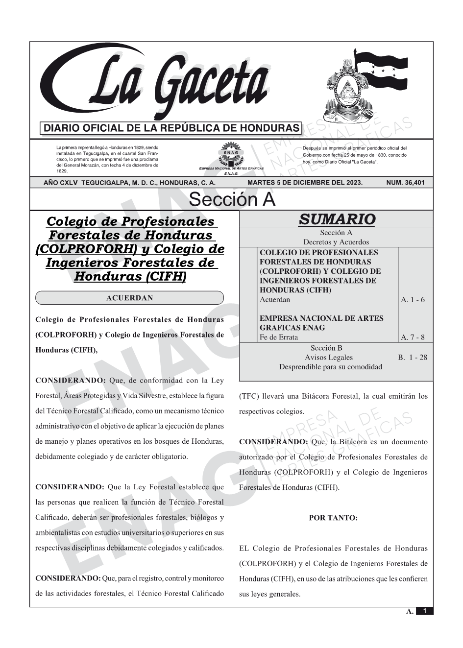 COLEGIO DE PROFESIONALES FORESTALES DE HONDURAS (COLPROFORH) Y COLEGIO DE INGENIEROS FORESTALES DE HONDURAS (CIFH)Acuerdan