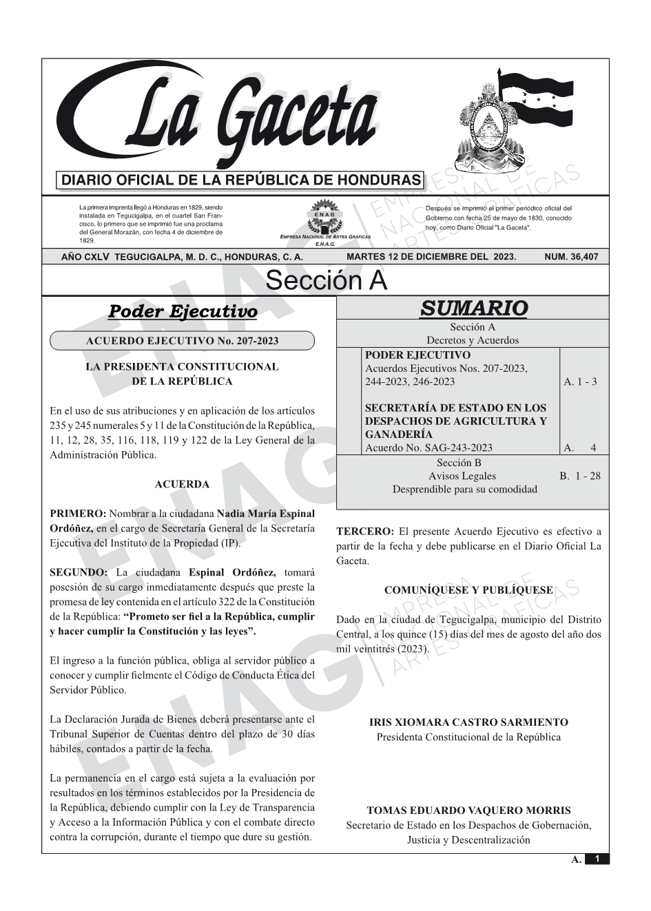 PODER EJECUTIVOAcuerdos Ejecutivos Nos. 207-2023, 244-2023, 246-2023