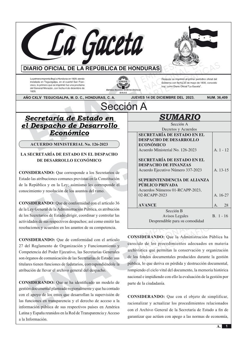 La Gaceta N° 36,409 del 14 de diciembre de 2023
