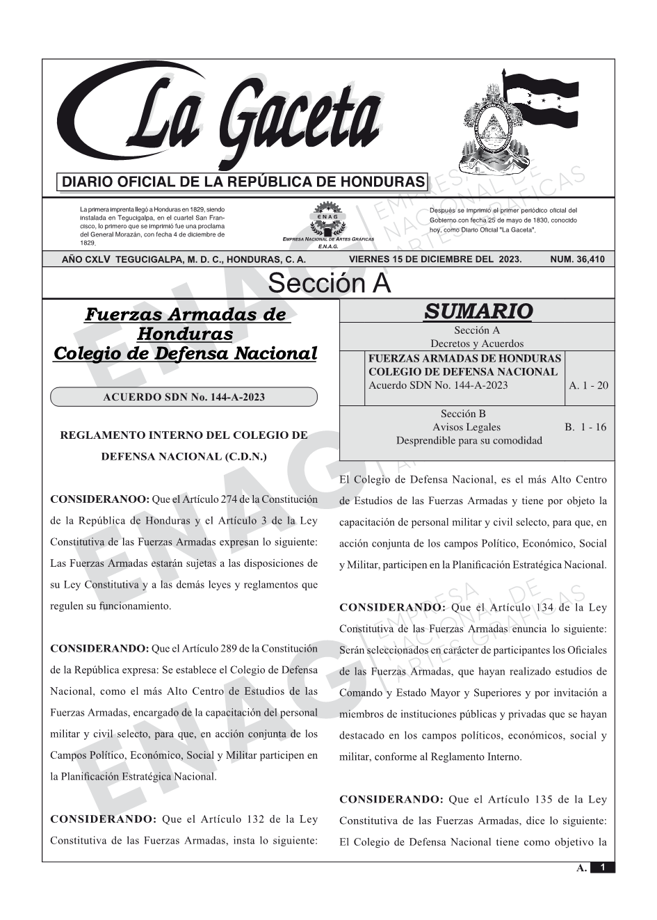 La Gaceta N° 36,410 del 15 de diciembre de 2023