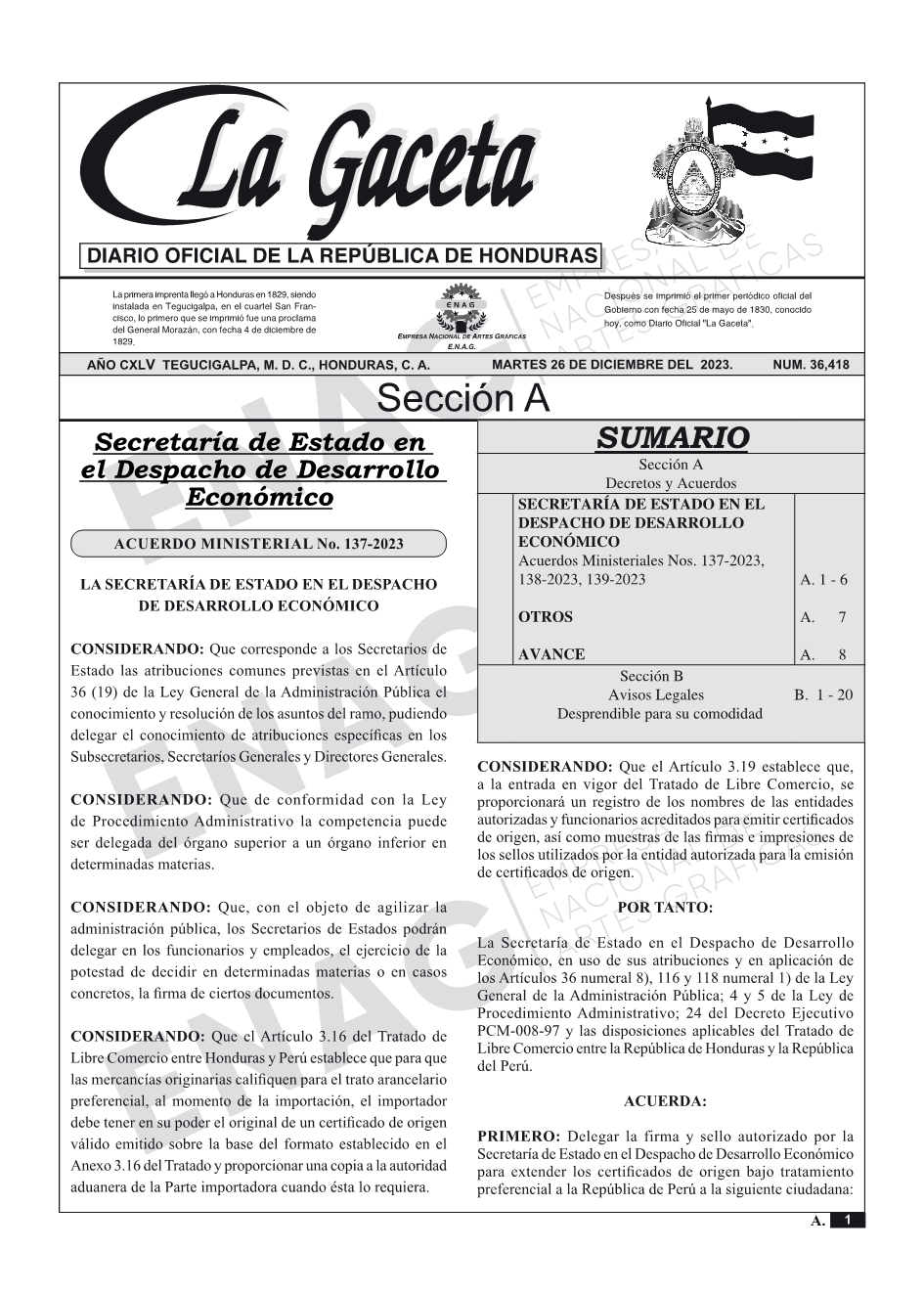 SECRETARÍA DE ESTADO EN EL DESPACHO DE DESARROLLO ECONÓMICOAcuerdos Ministeriales Nos. 137-2023, 138-2023, 139-2023