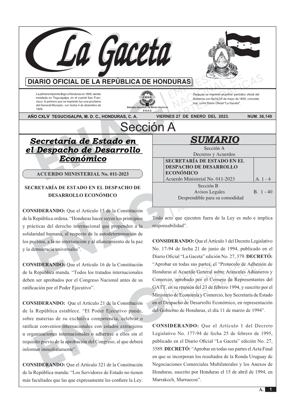 La Gaceta N° 36,140 del 27 de enero de 2023