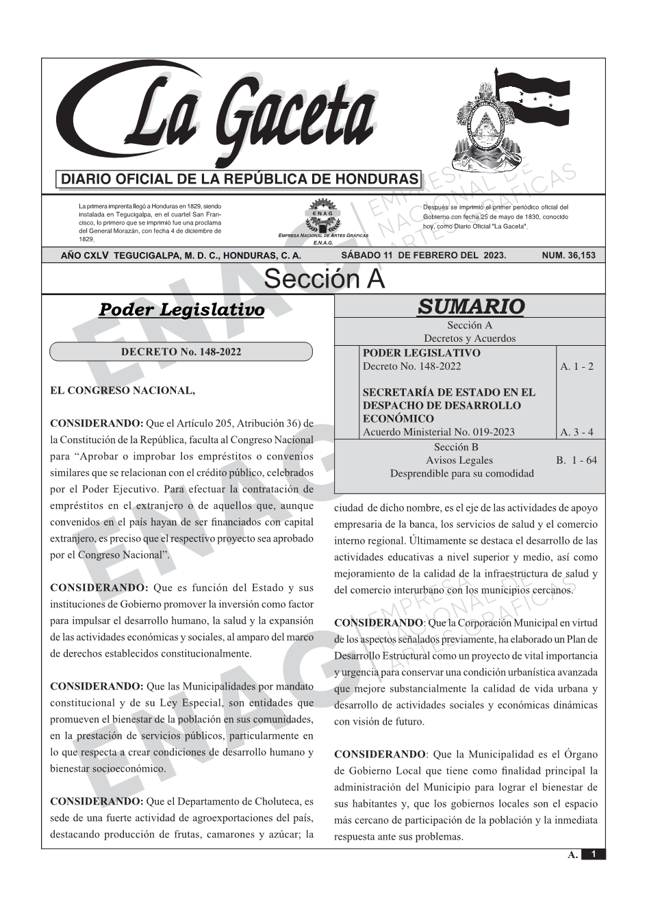 SECRETARÍA DE ESTADO EN EL DESPACHO DE DESARROLLO ECONÓMICOAcuerdo Ministerial No. 019-2023