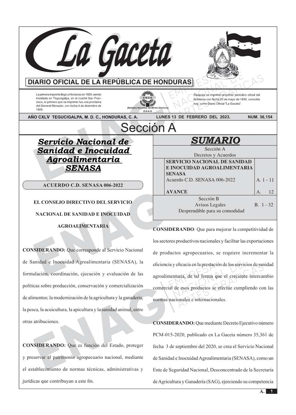 La Gaceta N° 36,154 del 13 de febrero de 2023
